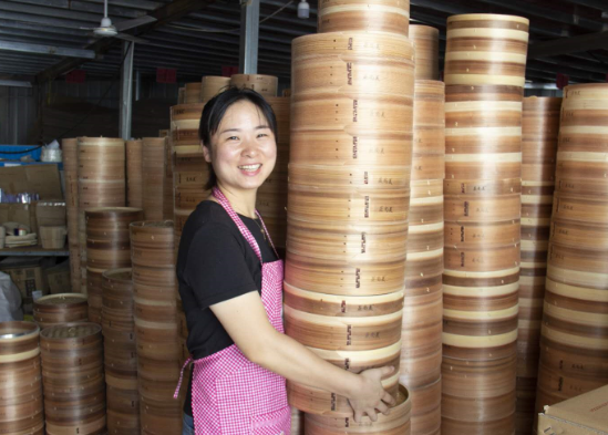 黄家村幸福工程脱贫母亲黄玉娟于2014年创办宁德汇林工艺品有限公司,2018年分别在虎贝镇黄家村、文峰村和城区设立3个生产基地,每个工位都是一户人家,已连续3年吸纳50多位计生母亲及其家庭成员进厂务工,参与黄家蒸笼制作、加工、销售标准化生产,受助户可在每个参与环节获益,实现“薪金+股金+慰问金+奖金”等多元化保障性收入。公司与创业母亲签署购销合同,实行契约式生产,创业母亲除享受低价购买原材料、免费学习优良工艺、免费使用先进设备、免费领取蒸笼制作书籍等特殊服务外,还全部参与“五统一”标准化生产,轻松实现家门口就业和自主创业。目前,公司已形成研发、加工、销售、出口一条龙服务的规模化经营模式,获得3个蒸笼设计专利、3个自主品牌,生产的“蒸尚美”、“青若”、“九世传”牌蒸笼及系列产品销往全国各地及海外市场,并和淘宝、天猫、京东、亚马逊等国内外知名电商销售平台及线下多个餐饮连锁企业建立长期战略合作伙伴关系,年营业额2000万元,带动800多个计生户从事蒸笼生产,实现蒸笼产值1.5亿多元,年人均收入4万多元,形成“一村一品”的计生家庭创业示范基地,走出了蒸笼产业化发展的脱贫新路子,逐步实现“大户带小户,小户带弱户(贫困户),全村共致富”帮带目标。