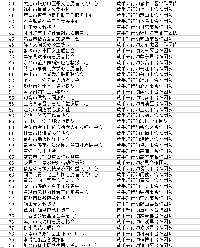 自2020年12月1日发布“黄手环行动”招募合作团队通知以来,截止12月15日共收到新申请成为合作团队的机构申请(非2020年合作团队)174份,2020年合作团队续约申请115份。