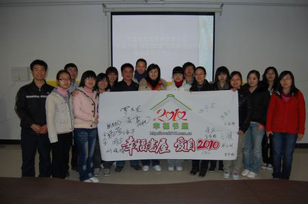 “幸福书屋 爱自2010”项目自启动以来,得到了社会各届爱心人士尤其是广大网民朋友的大力支持,目前已募集善款50余万元。4月13日至15日华北电力大学外国语学院班长陈丹霓组织全班共17名学生在校园开展了募捐活动,来自学校外国语学院、电气与电子工程学院、经济与管理学院、国际教育学院等10个班级的学生奉献了爱心,共筹集善款901.60元。