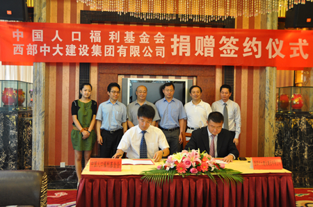 2011年6月17日,西部中大建设集团有限公司向中国人口福利基金会捐款人民币500万元,支持创建幸福家庭活动,捐赠签约仪式在北京举行。