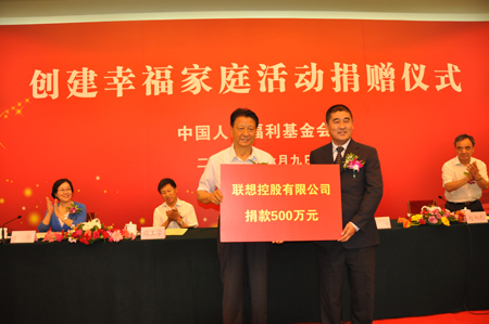 2012年7月9日上午,联想控股有限公司、珠海市新医科医疗科技有限公司等向中国人口福利基金会创建幸福家庭活动捐赠善款物资仪式在人民大会堂隆重举行。第十届全国政协副主席、中国人口福利基金会会长王忠禹,国家人口计生委党组成员、副主任崔丽,中国计划生育协会党组书记、常务副会长杨玉学,中国人口福利基金会理事长赵炳礼,捐赠企业代表、受赠单位代表等出席了捐赠仪式。