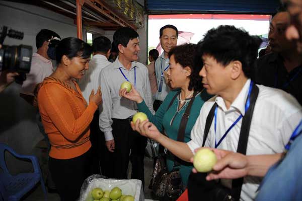 11月8日下午,参加幸福工程经验交流会的代表冒雨考察了福建省漳州市长泰县受助母亲戴福兰种植芭乐基地。