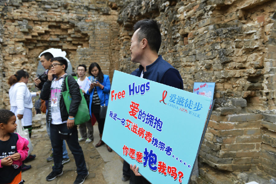 在长城徒步的现场,每个烽火台均设置不同的互动和表演环节。其中艾滋病患代表和权益拥护者“大伟”(化名)在烽火台“求拥抱”,通过与游人的拥抱消除对艾滋病毒携带者的歧视;在另一处烽火台,参与者与游人们写下了自己对艾滋病的看法及对艾滋病患的支持,并合影留念。本次活动的赞助商之一DKT公司还专门制作了三个“安全套先生”玩偶出现在长城上,倡导反对艾滋歧视。