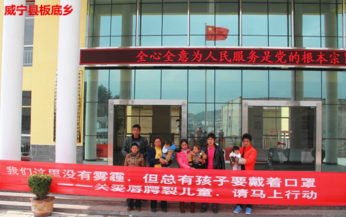 2014年3月23日至4月5日,“幸福微笑——贵州千名唇腭裂儿童救助行动走进威宁”公益活动在威宁彝族回族苗族自治县人民医院举行。经过初筛,来自全县的117名患儿接受了首日国际医疗队的筛查,最终确定114名患儿可以在接下来的两周时间里接受手术,其中就包括来自威宁县板底乡的5名唇腭裂患儿。