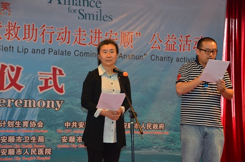 2014年5月26日上午,由中国人口福利基金会、美国微笑联盟基金会、贵州省计划生育协会联合主办的“幸福微笑——贵州千名唇腭裂儿童救助行动走进安顺”公益活动在安顺市人民医院举行启动仪式。