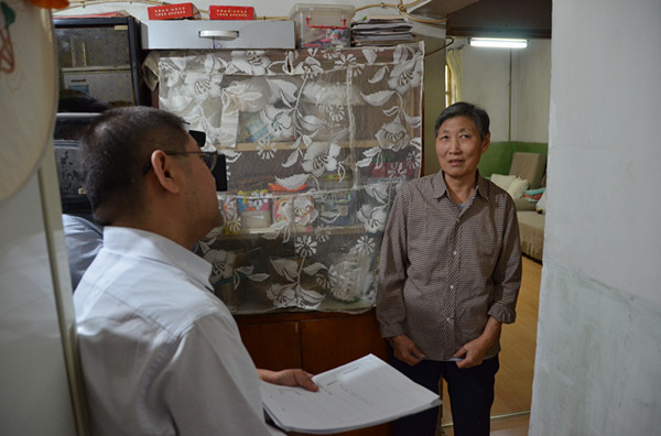 人基会工作人员在询问霍秀如奶奶,为其进行无障碍改造评估