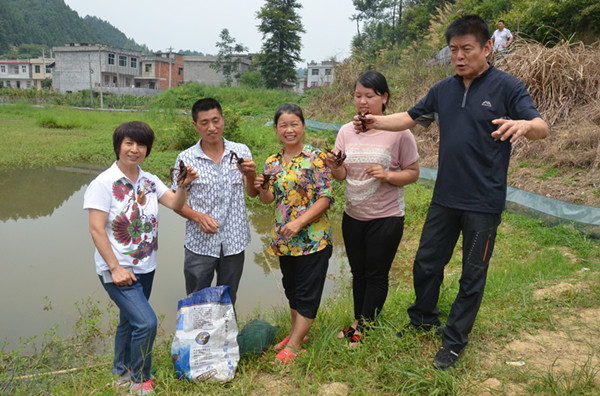 通山县于2014年得到幸福工程全国组委会50万元项目款,在闯王镇采用基地加受助母亲的救助方式,通过能人带动了50户贫困母亲家庭。小龙虾养殖户焦月琴把自己的2万元受助款用入股的方式投入合作社,月月挣工资,年终有分红,夫妻俩都在合作社务工,年终可收入10余万元。