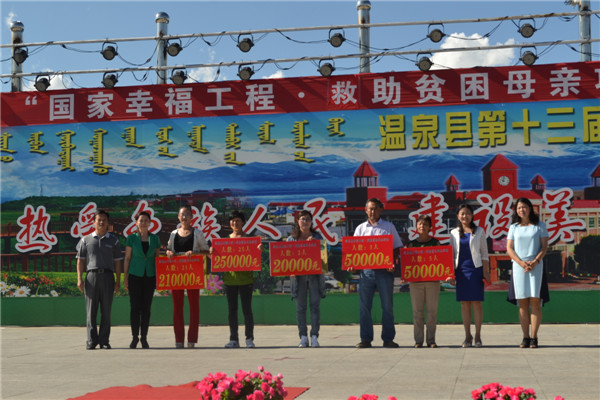 6月29日下午,中国人口福利基金会“幸福工程——救助贫困母亲行动”项目启动仪式暨纪念第二十六个“7.11”世界人口日,在温泉县文化广场如期举行。