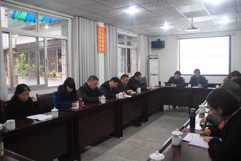 2月21日上午,重庆市大足区2017年“幸福工程”项目座谈会在区计生协会二楼会议室召开,大足区计生协会党组书记、常务副会长高军主持会议,相关镇、街项目办人员和四位幸福工程项目户代表参加了座谈会。